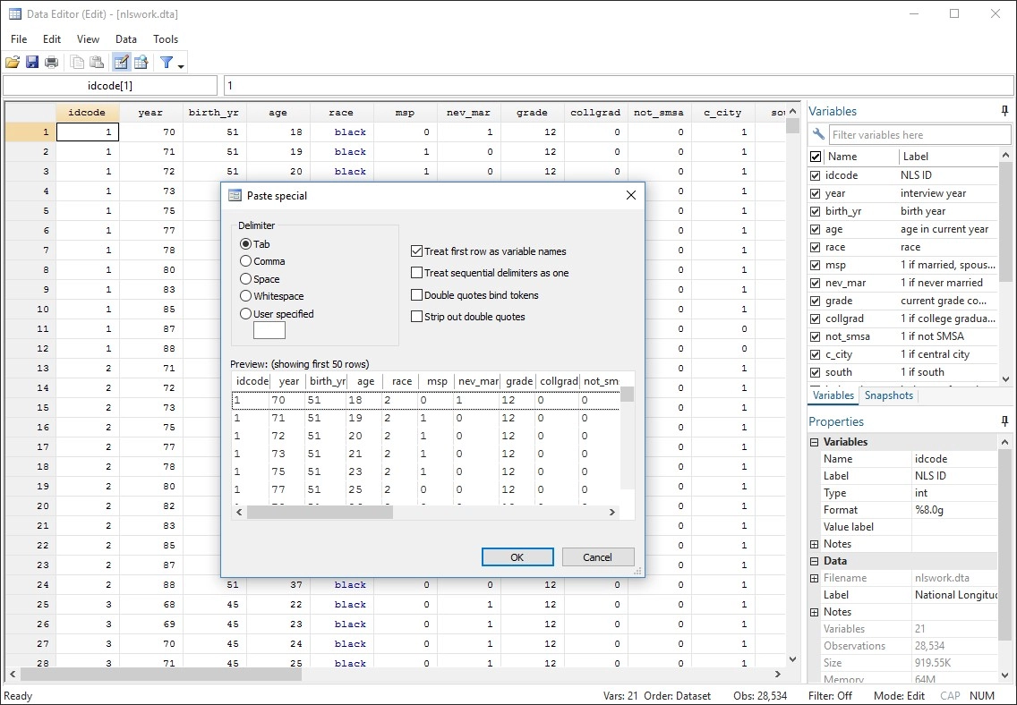 Los comandos de Stata para realizar tareas son intuitivos y fáciles de aprender. Mejor aún, todo lo aprendido sobre la ejecución de una tarea puede aplicarse a otras. Por ejemplo, simplemente añada `if gender=="female"` a cualquier comando para limitar el análisis a las mujeres de la muestra. Simplemente añada `vce(robust)` a cualquier estimador para obtener errores estándar y pruebas de hipótesis robustas a muchos supuestos comunes.