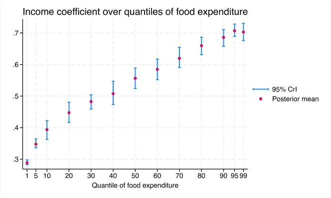 La consistencia es aún más profunda. Lo aprendido sobre los comandos de gestión de datos suele aplicarse a los comandos de estimación, y viceversa. También existe un conjunto completo de comandos de posestimación para realizar pruebas de hipótesis, formar combinaciones lineales y no lineales, hacer predicciones, generar contrastes e incluso realizar análisis marginales con gráficos de interacción. Estos comandos funcionan de la misma manera con prácticamente cualquier estimador.