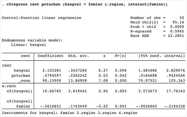 Cuando las variables explicativas están relacionadas con variables observables omitidas, con variables no observables o cuando hay sesgo de selección, las relaciones causales se ven distorsionadas y los estimadores estándar producen estimaciones inconsistentes de las verdaderas relaciones. Stata puede ajustar modelos consistentes cuando existe dicha endogeneidad o selección, ya sea que su variable de resultado sea continua, binaria, de conteo u ordinal, y ya sea que sus datos sean de corte transversal o de panel. Stata incluso puede combinar covariables endógenas, selección y efectos de tratamiento en el mismo modelo.