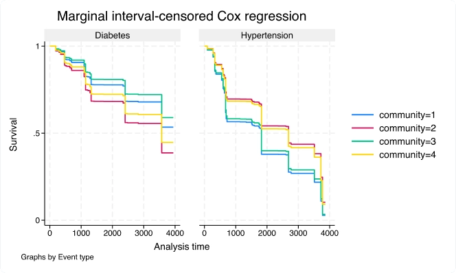Analice resultados de duración—resultados que miden el tiempo hasta un evento como un fallo o una muerte—utilizando las herramientas especializadas de Stata para análisis de supervivencia. Tenga en cuenta las complicaciones inherentes a los datos de supervivencia, como no observar a veces el evento (censura a la derecha, izquierda o por intervalo), individuos que ingresan al estudio en momentos diferentes (entrada retardada) e individuos que no son observados continuamente a lo largo del estudio (lagunas). Puede estimar y graficar la probabilidad de supervivencia a lo largo del tiempo. O modele la supervivencia como función de covariables utilizando modelos de regresión de Cox, Weibull, lognormal y otros. Prediga razones de riesgo, tiempo medio de supervivencia y probabilidades de supervivencia. ¿Tiene grupos de individuos en su estudio? Ajuste la correlación dentro de los grupos con un modelo de efectos aleatorios o de fragilidad compartida. Si tiene muchas covariables potenciales, utilice lasso cox y elasticnet cox para selección de modelos y predicción.