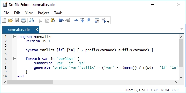 Todos tenemos tareas que realizamos constantemente: crear un tipo específico de variable, generar una tabla específica, realizar una secuencia de pasos estadísticos, calcular un RMSE, etc. Las posibilidades son infinitas. Stata cuenta con miles de procedimientos integrados, pero es posible que tenga tareas relativamente únicas o que desee realizar de una manera específica.