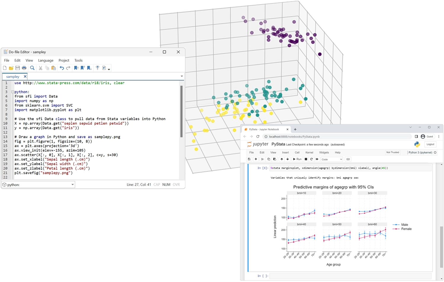 Stata también tiene PyStata, que proporciona una integración completa con Python, lo que le permite aprovechar todo el poder de Python directamente desde su código Stata y aprovechar todo el poder de Stata desde su código Python.